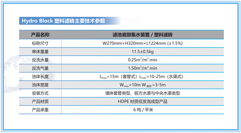 ◇ 滤砖:双重平行侧向滤砖,提供超强的反冲洗气水分配性能;